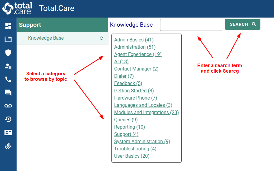 The Contact Center knowledge base is a great way to quickly find answers to many of your support questions.
